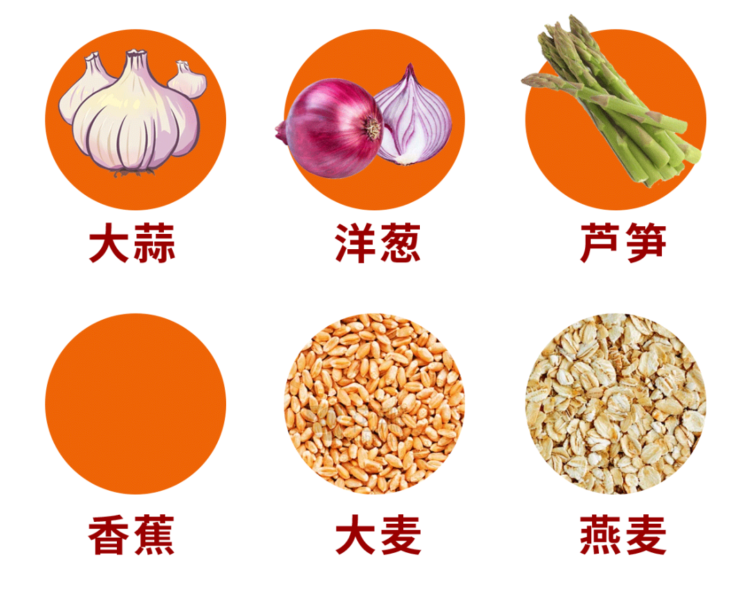 大蒜、洋葱、芦笋、香蕉、大麦、燕麦
